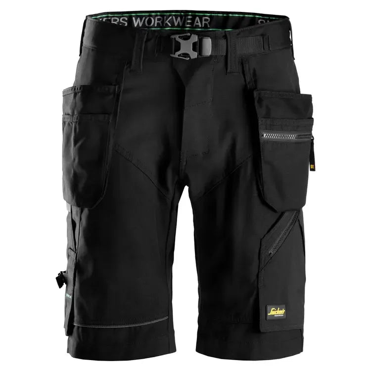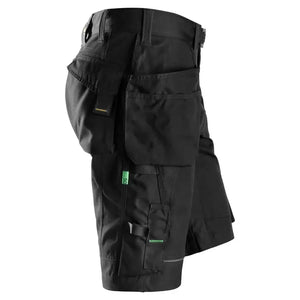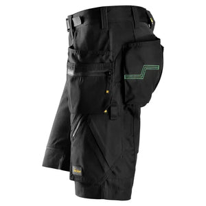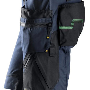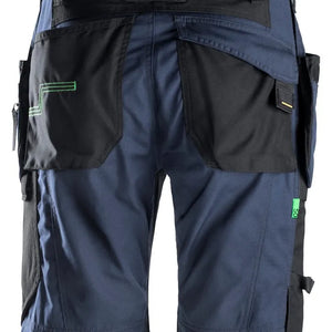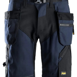 Mycket lätta och stretchiga arbetsshorts med elastiska grensömmar och CORDURA®-förstärkta hölsterfickor avsedda för alla typer av arbete. Shortsen är tillverkade i ventilerande stretchtyg och har kraftiga CORDURA® ripstop-förstärkningar vid bensluten och fickorna för ökad slitstyrka. Lättåtkomliga hölsterfickor med blixtlåsfack, expanderbar elastisk utanpåficka med blixtlåsfack och tumstocksficka med knivknapp för praktisk förvaring.