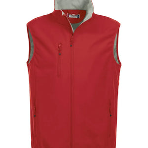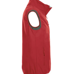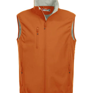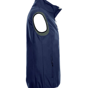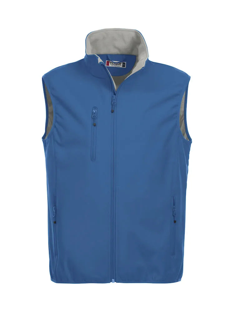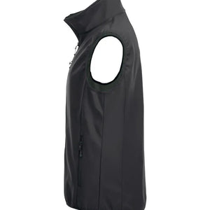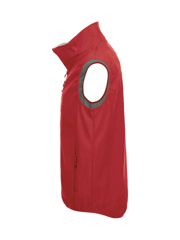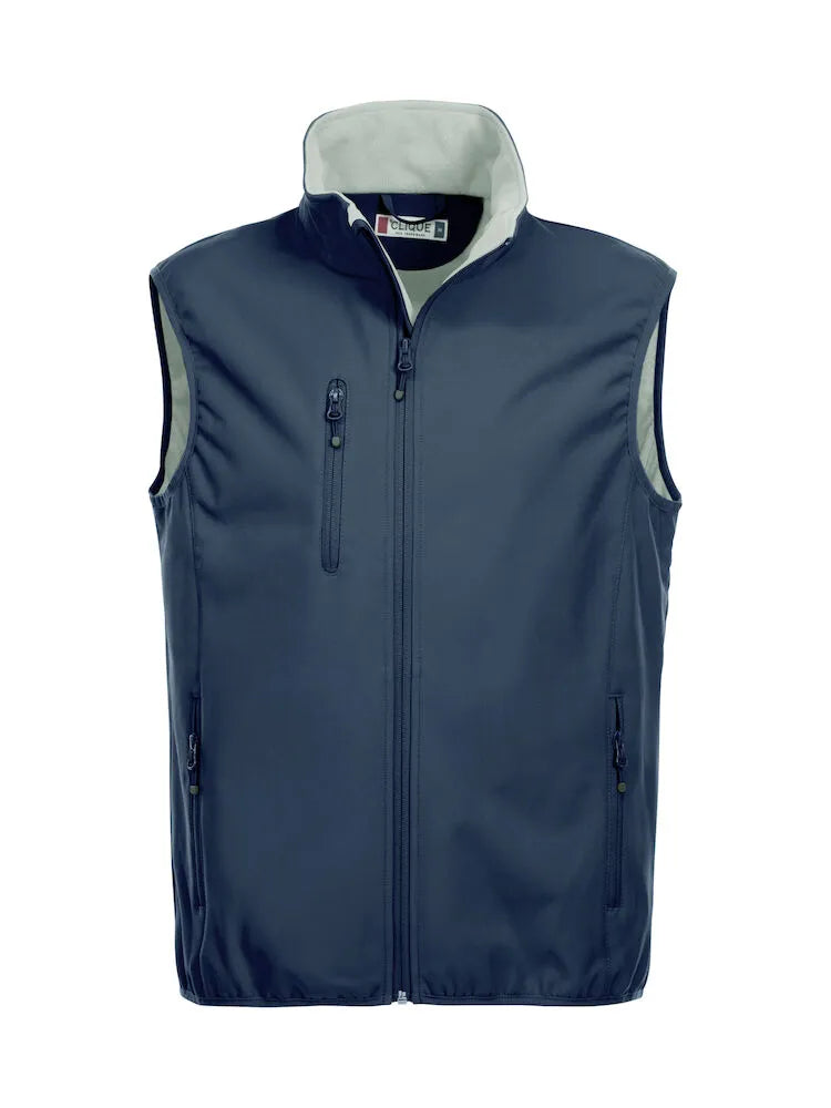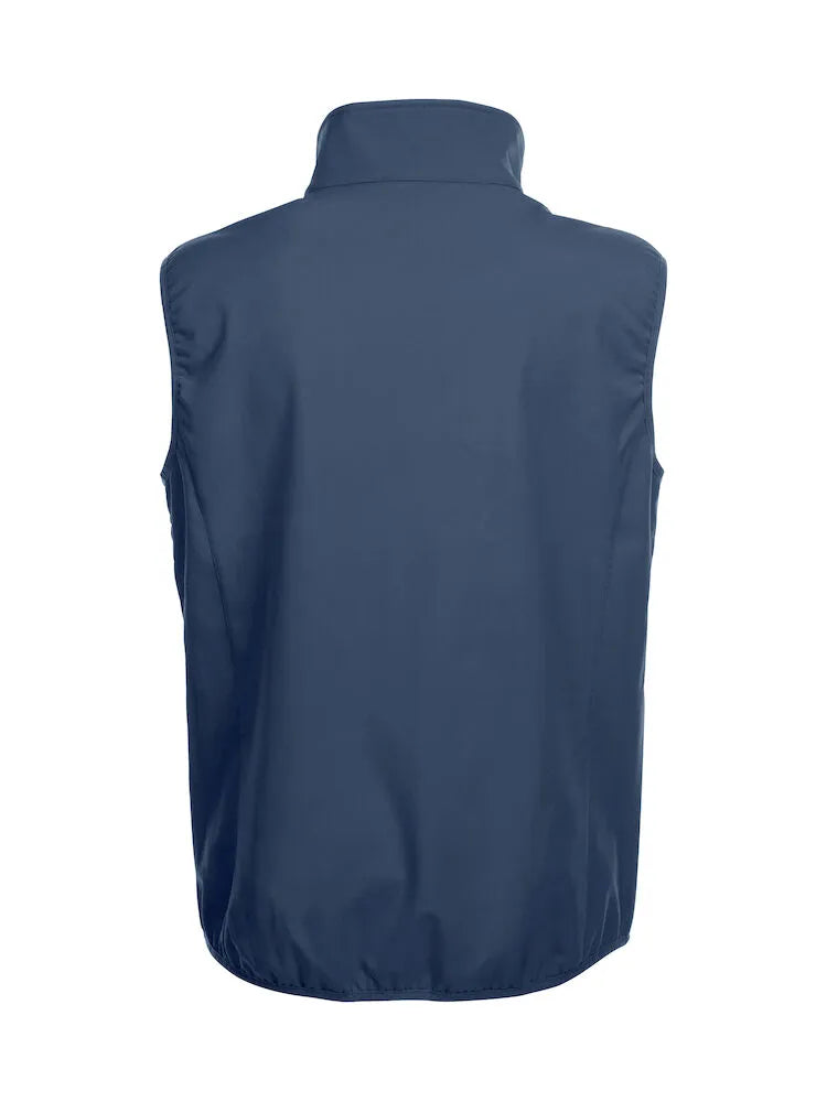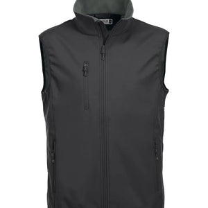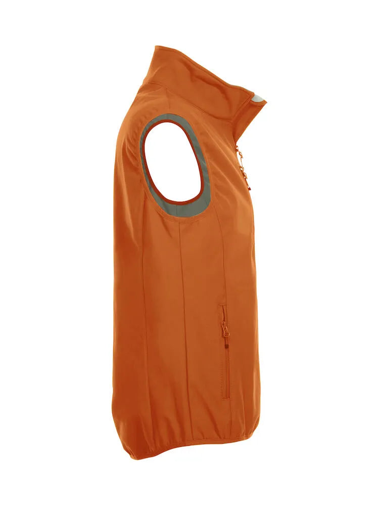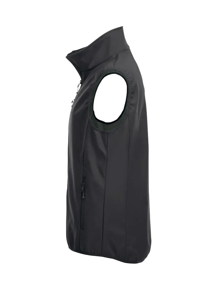 Softshellväst med tre ytterfickor och två innerfickor. Ton-i-ton dragkedjor, elastiskt band i nederkant och i ärmhål.