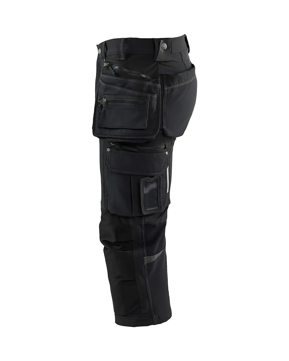 Materialet är mjuk 4-vägsstretch som är både stark och stretchig åt alla håll. Piratbyxan har praktiska fickor med förstärkning, tumstocksficka, framfickor samt funktionella verktygshållare som exempelvis hälla för hammarhållare.